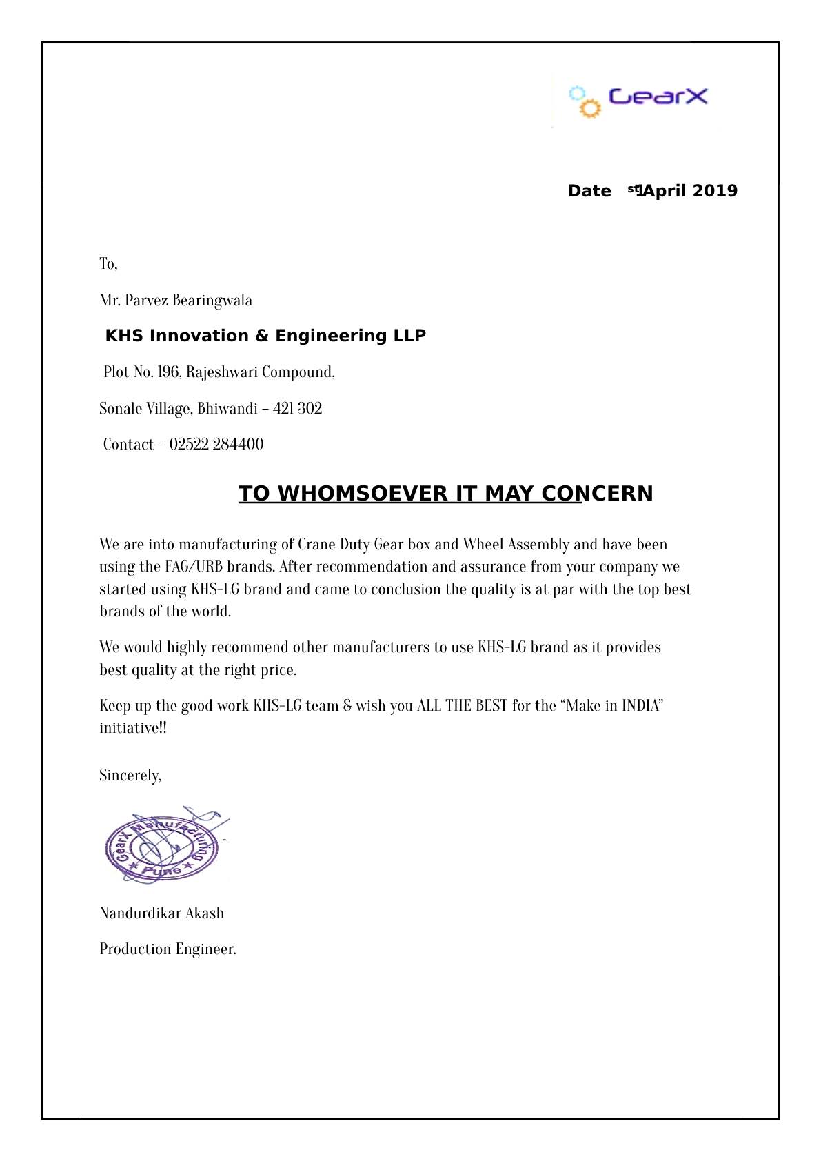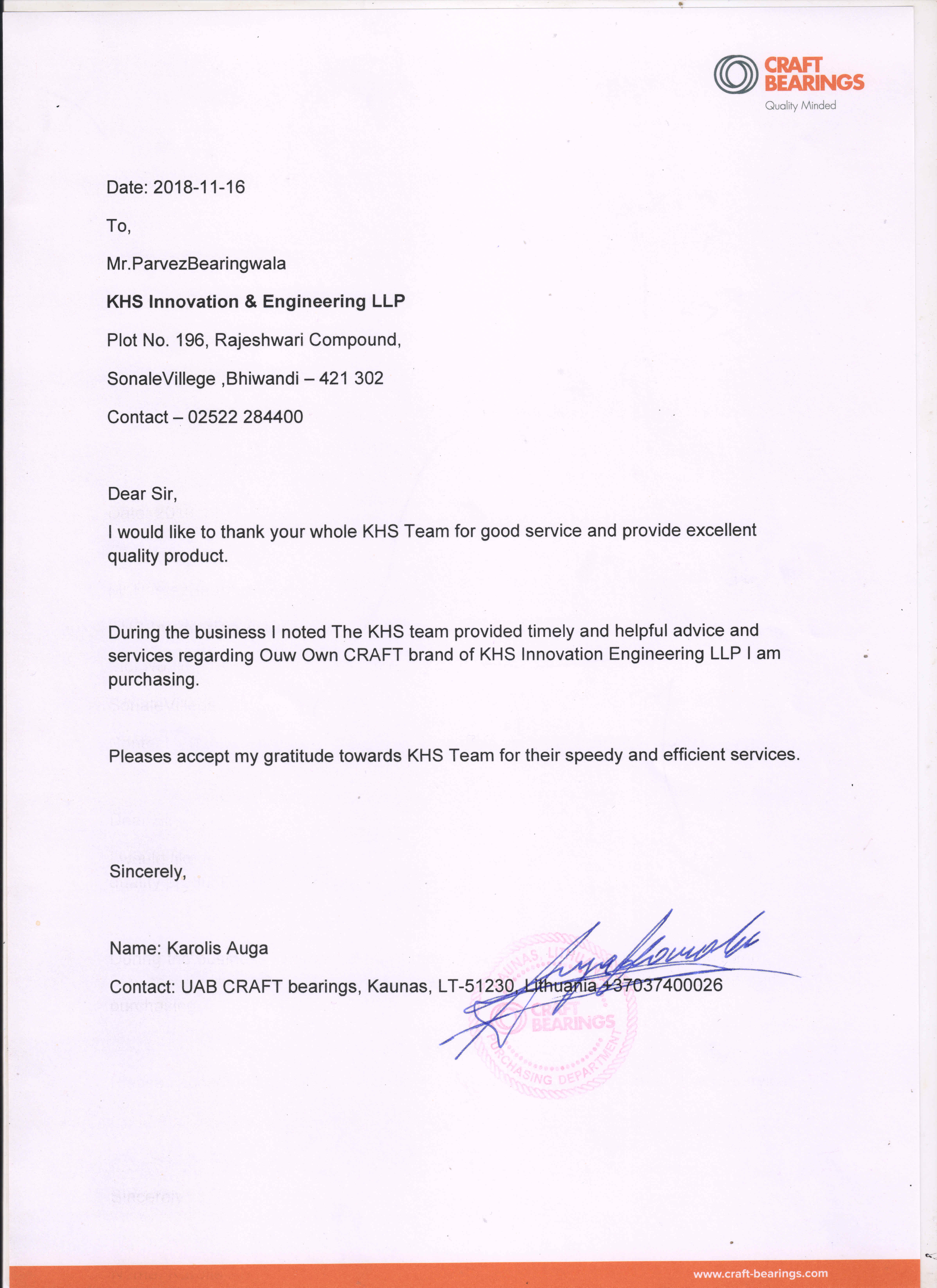KHS Innovation & Engineering LLP,