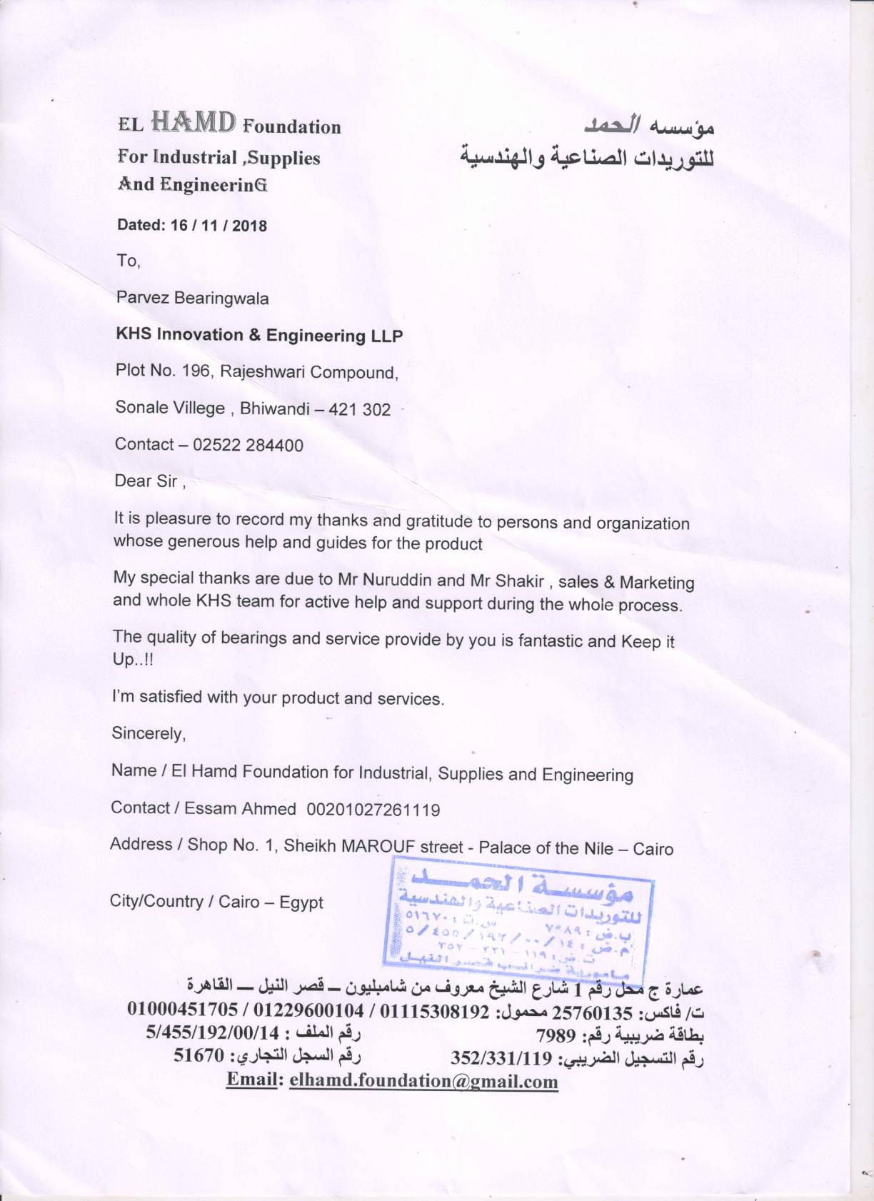 Factory Office / Correspondence Address: