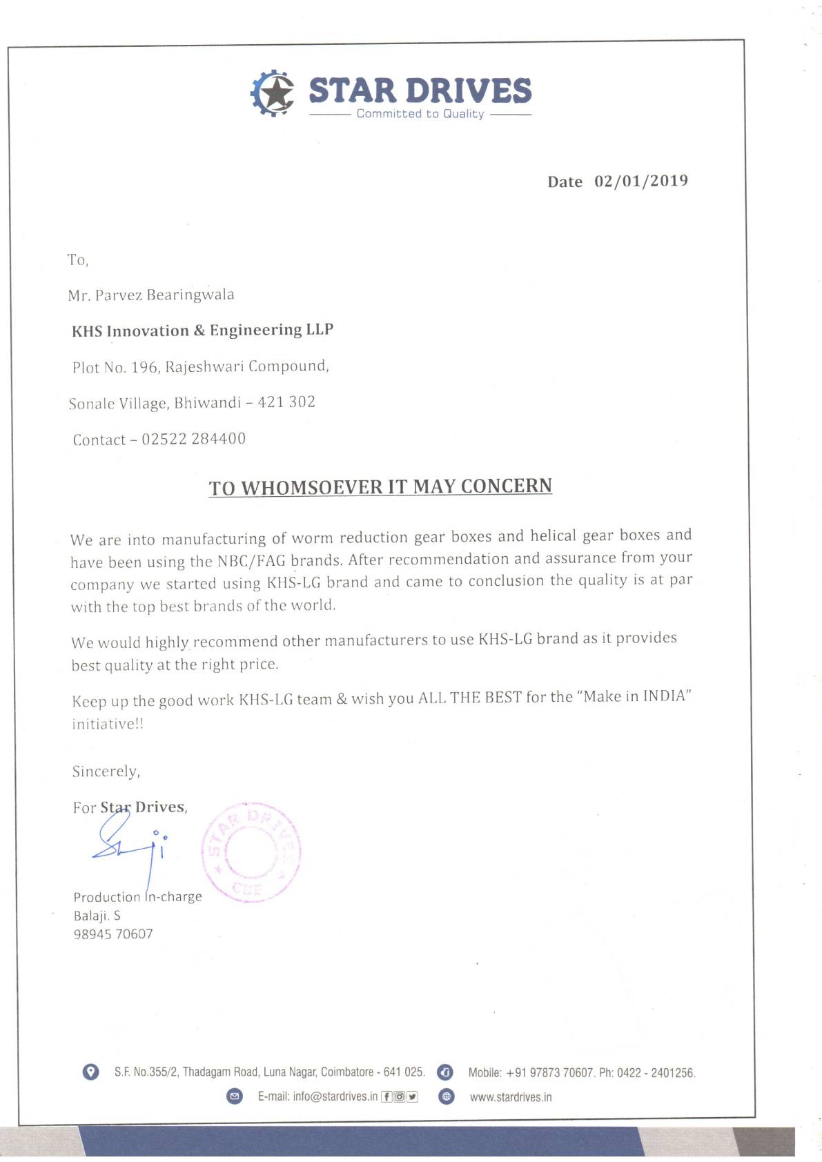KHS-LG Innovation & Engineering LLP is a one-stop destination for all types of bearing solutions. We are a leading bearing manufacturer in India. With over 50+ years of experience, KHS-LG has emerged as the leading bearings provider in the market and has worked with various notable companies and organizations functioning across a diverse range of industries. The products and services offered by KHS-LG are high technology to assist manufacturers in optimizing their product design.